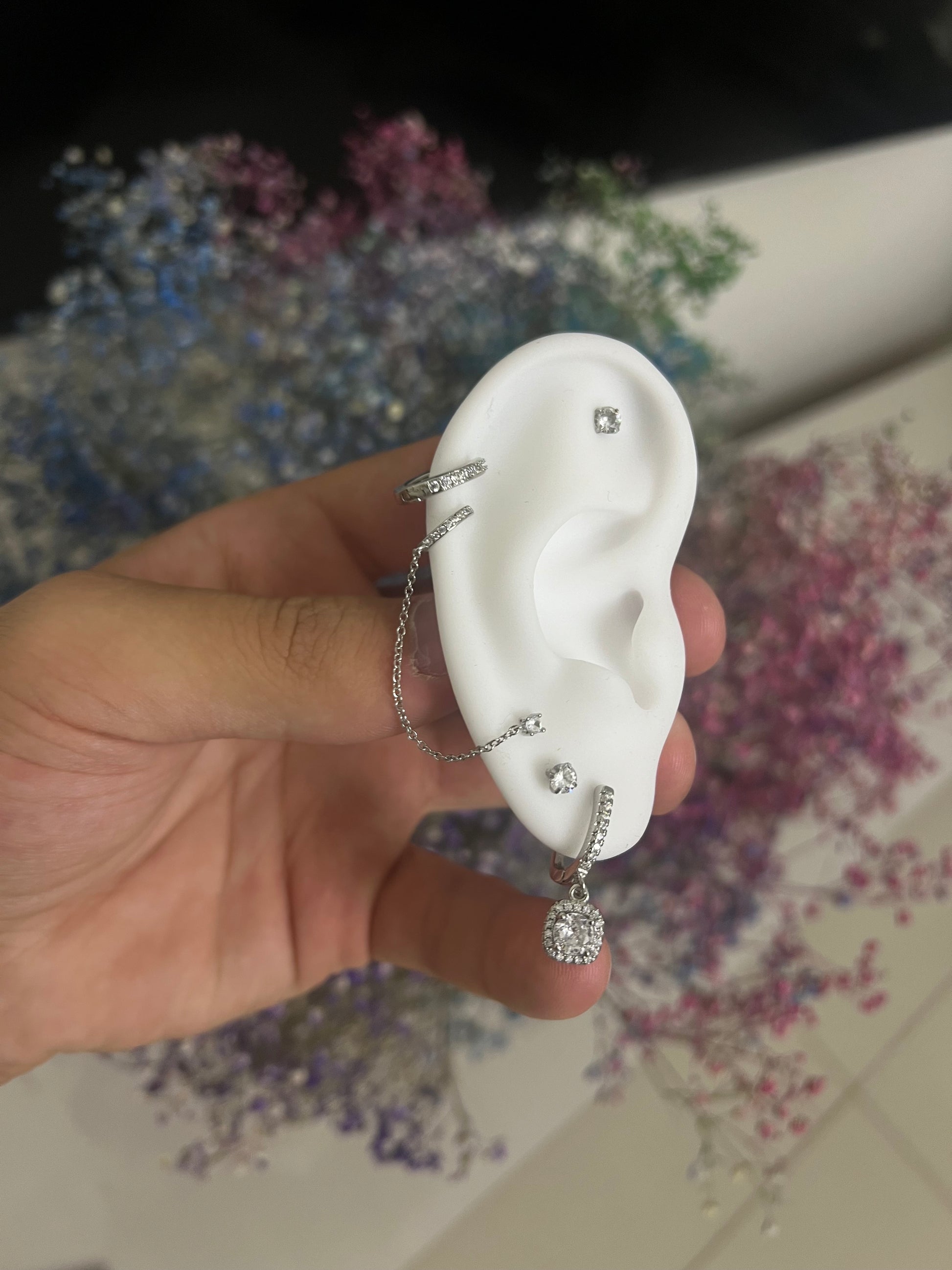 עגיל שומי משובץ כסף 925