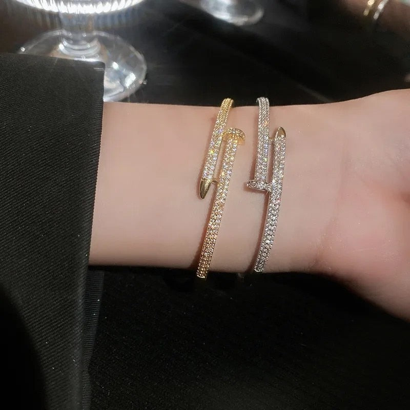 צמיד בורג משובץ זרקונים | זהב | כסף